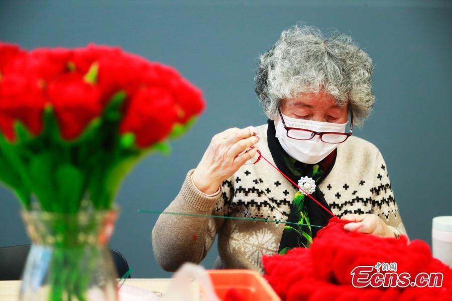 Shanghai aunties make woolen bouquets for Winter Olympics (6)