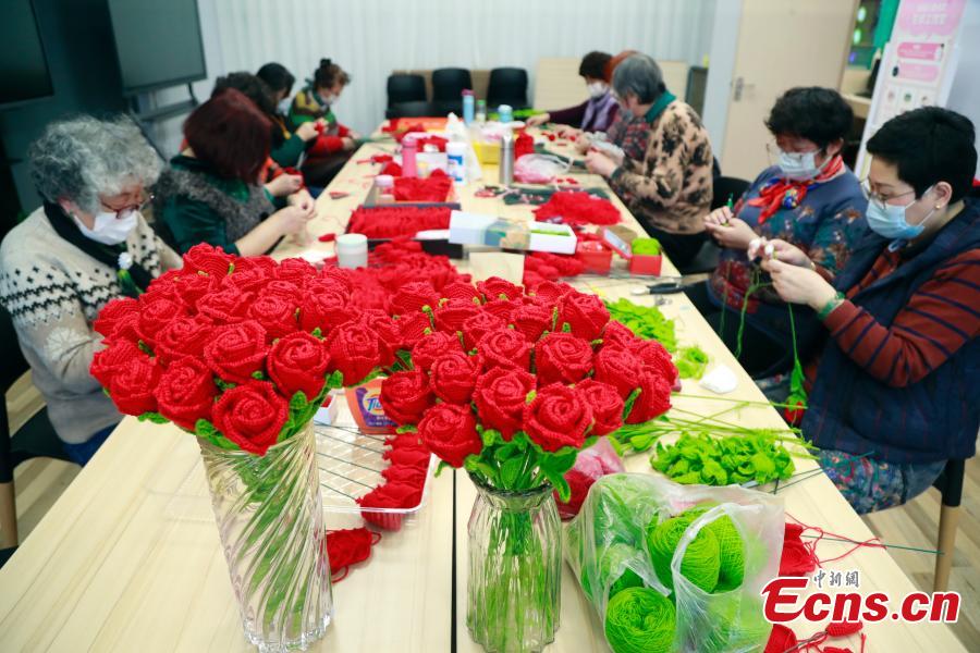 Shanghai aunties make woolen bouquets for Winter Olympics
