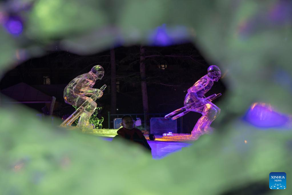 People visit the 48th Harbin ice lantern fair in Harbin, northeast China's Heilongjiang Province, Jan. 5, 2022. The ice lantern fair kicked off here on Wednesday. (Xinhua/Wang Jianwei)