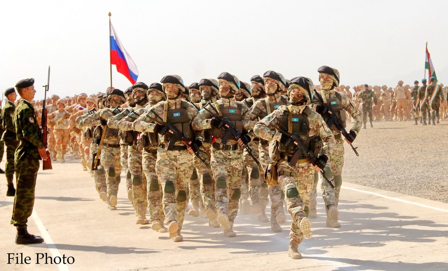 Servicemen from member states of the Collective Security Treaty Organization (CSTO) take part in a joint military drills in Tajikistan, Oct. 18, 2021. (Xinhua)