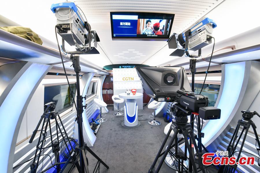 A studio for 5G high definition live broadcasts on a smart Fuxing bullet train, Jan. 5, 2022. (Photo: China News Service/Sun Lijun)