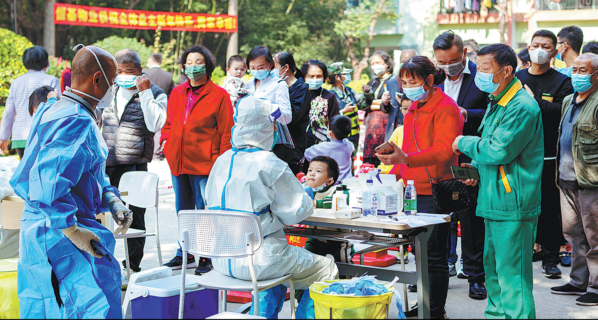 Residents queue up for nucleic acid tests at a community in Shenzhen, Guangdong province, on Friday. [Photo provided to China Daily]