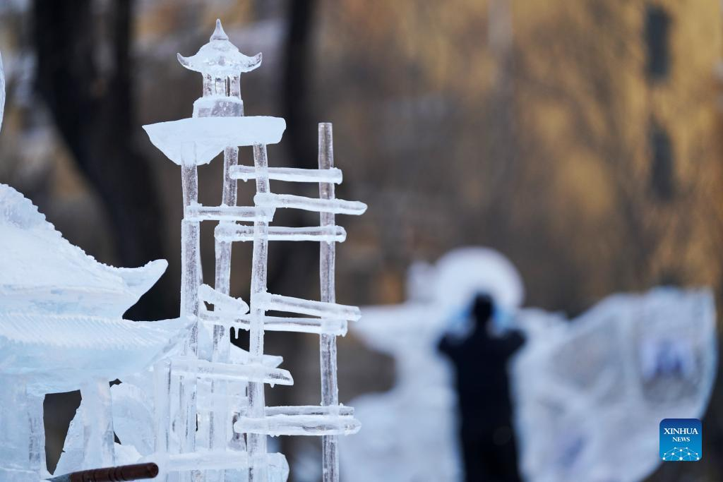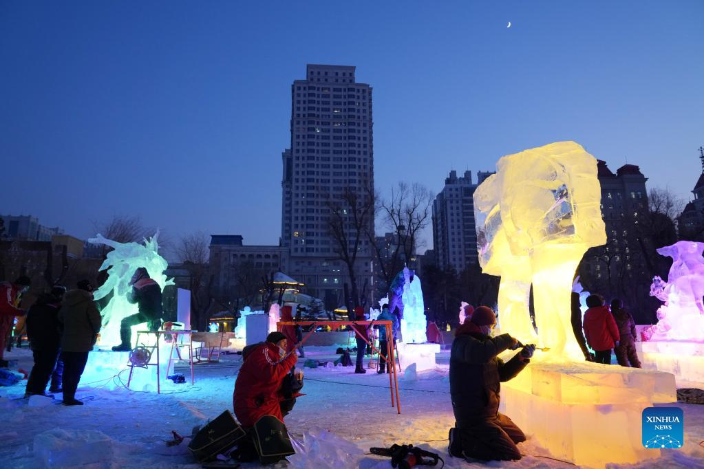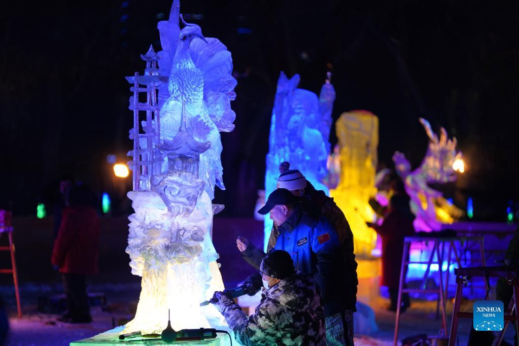 Sculptors take part in 41th national professional ice sculpture competition in Harbin