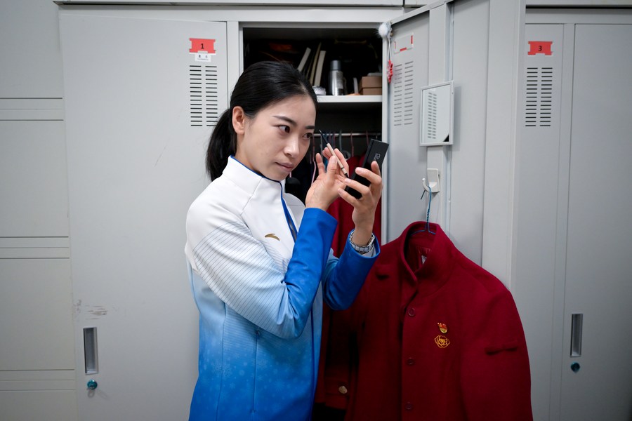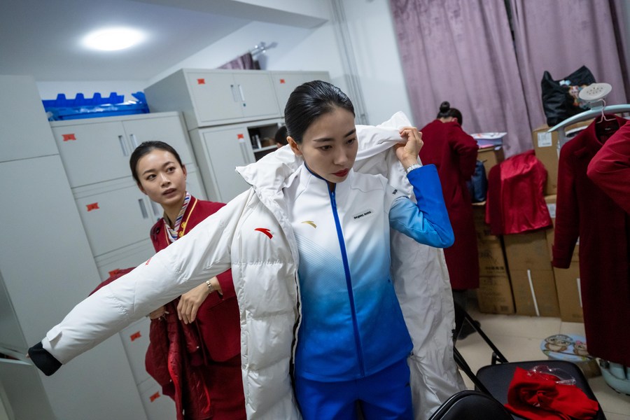 Wu Yifan prepares to set out for work at her dormitory on Dec. 30, 2021. (Xinhua/Liu Jinhai)