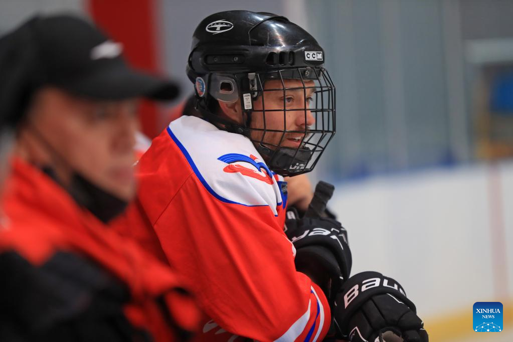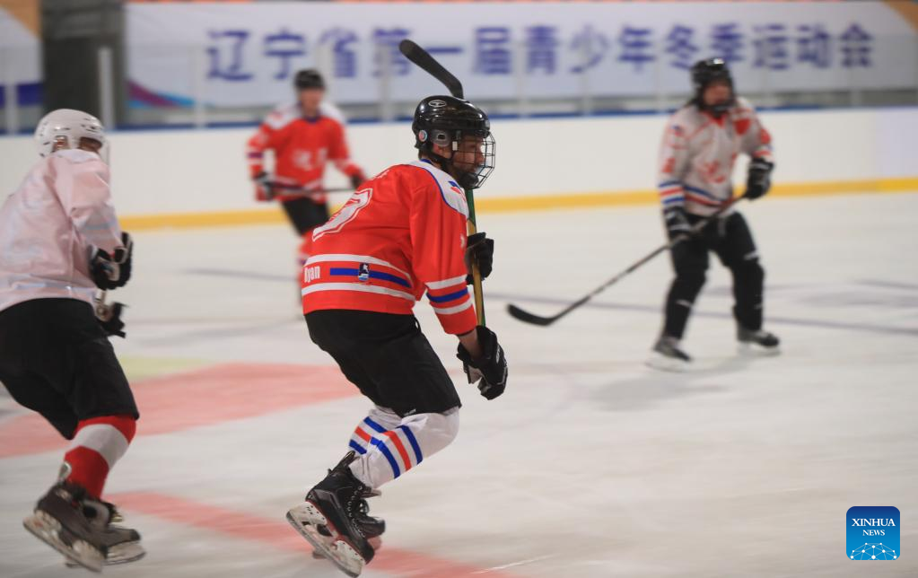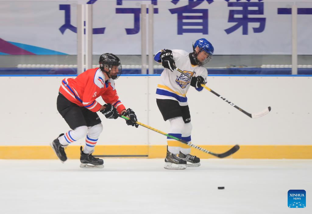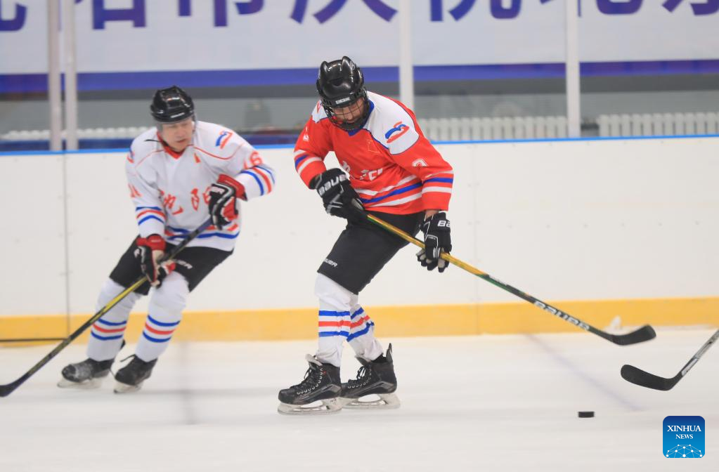 Ryan (L) plays ice hockey with friends in Shenyang, northeast China's Liaoning Province, Jan. 6, 2022. Ryan is a 38-year-old Canadian living in Shenyang. Ryan came to China for the first time in 2013 and now works as an engineer at a company in Shenyang. Ryan is an enthusiast devoted to winter sports, especially ice hockey. Through weekly training in ice hockey, Ryan made friends with many local ice hockey lovers. As the 2022 Beijing Olympics approaches, Ryan is looking forward to a great performance from all the athletes. He wishes the Beijing Winter Olympics a great success. (Xinhua/Yang Qing)