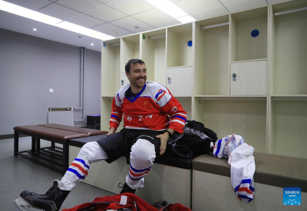 Ryan changes clothes before playing ice hockey in Shenyang, northeast China's Liaoning Province, Jan. 6, 2022. Ryan is a 38-year-old Canadian living in Shenyang. Ryan came to China for the first time in 2013 and now works as an engineer at a company in Shenyang. Ryan is an enthusiast devoted to winter sports, especially ice hockey. Through weekly training in ice hockey, Ryan made friends with many local ice hockey lovers. As the 2022 Beijing Olympics approaches, Ryan is looking forward to a great performance from all the athletes. He wishes the Beijing Winter Olympics a great success. (Xinhua/Yang Qing)