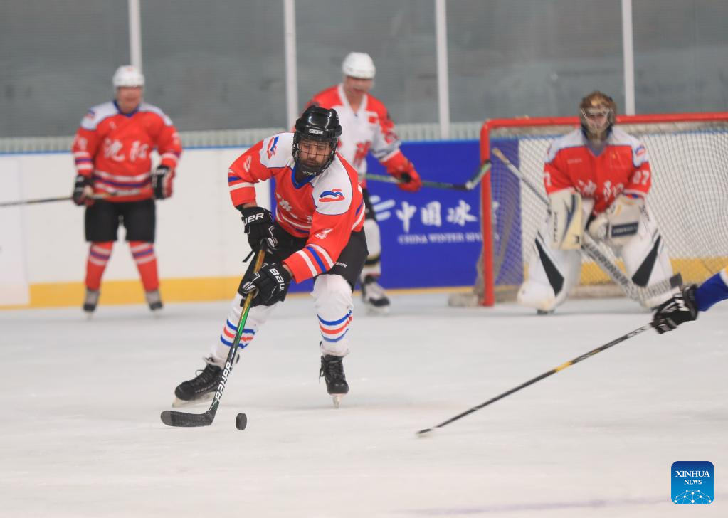 Ryan (R) plays ice hockey with friends in Shenyang, northeast China's Liaoning Province, Jan. 6, 2022. Ryan is a 38-year-old Canadian living in Shenyang. Ryan came to China for the first time in 2013 and now works as an engineer at a company in Shenyang. Ryan is an enthusiast devoted to winter sports, especially ice hockey. Through weekly training in ice hockey, Ryan made friends with many local ice hockey lovers. As the 2022 Beijing Olympics approaches, Ryan is looking forward to a great performance from all the athletes. He wishes the Beijing Winter Olympics a great success. (Xinhua/Yang Qing)