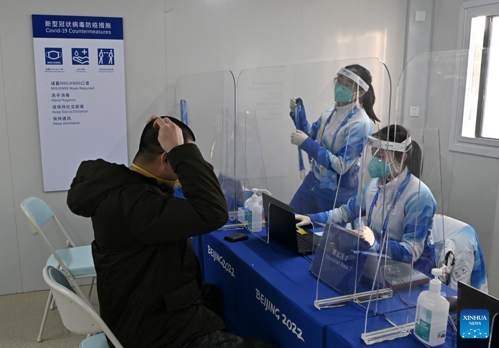 A journalist gets his certificate activated at the validation area of the Main Media Center for the 2022 Olympic and Paralympic Winter Games in Beijing, capital of China, Jan. 10, 2022. (Xinhua/He Changshan)