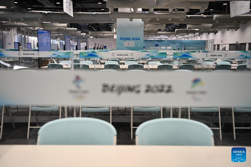 Photo taken on Jan. 10, 2022 shows the interior view of the Main Media Center for the 2022 Olympic and Paralympic Winter Games in Beijing, capital of China. (Xinhua/He Changshan)