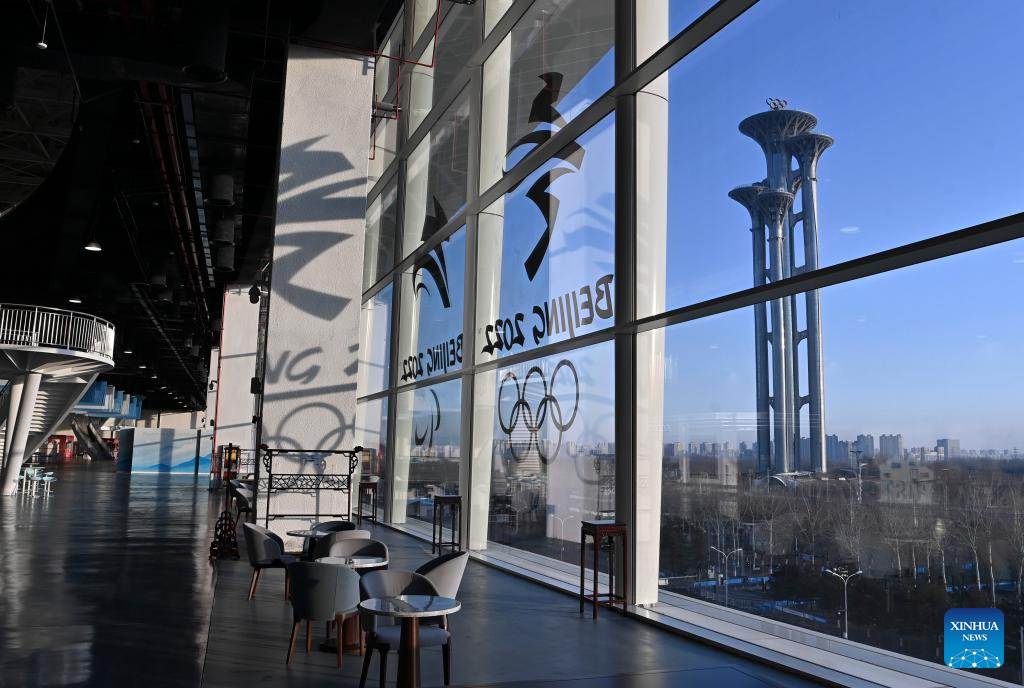 Photo taken on Jan. 10, 2022 shows the view of the Main Media Center for the 2022 Olympic and Paralympic Winter Games in Beijing, capital of China. (Xinhua/He Changshan)