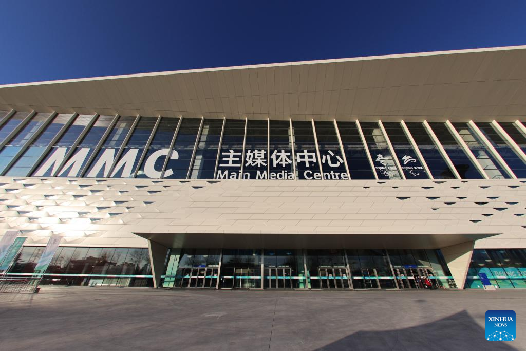 Photo taken on Jan. 10, 2022 shows the exterior view of the Main Media Center for the 2022 Olympic and Paralympic Winter Games in Beijing, capital of China. (Xinhua/Xu Zijian)