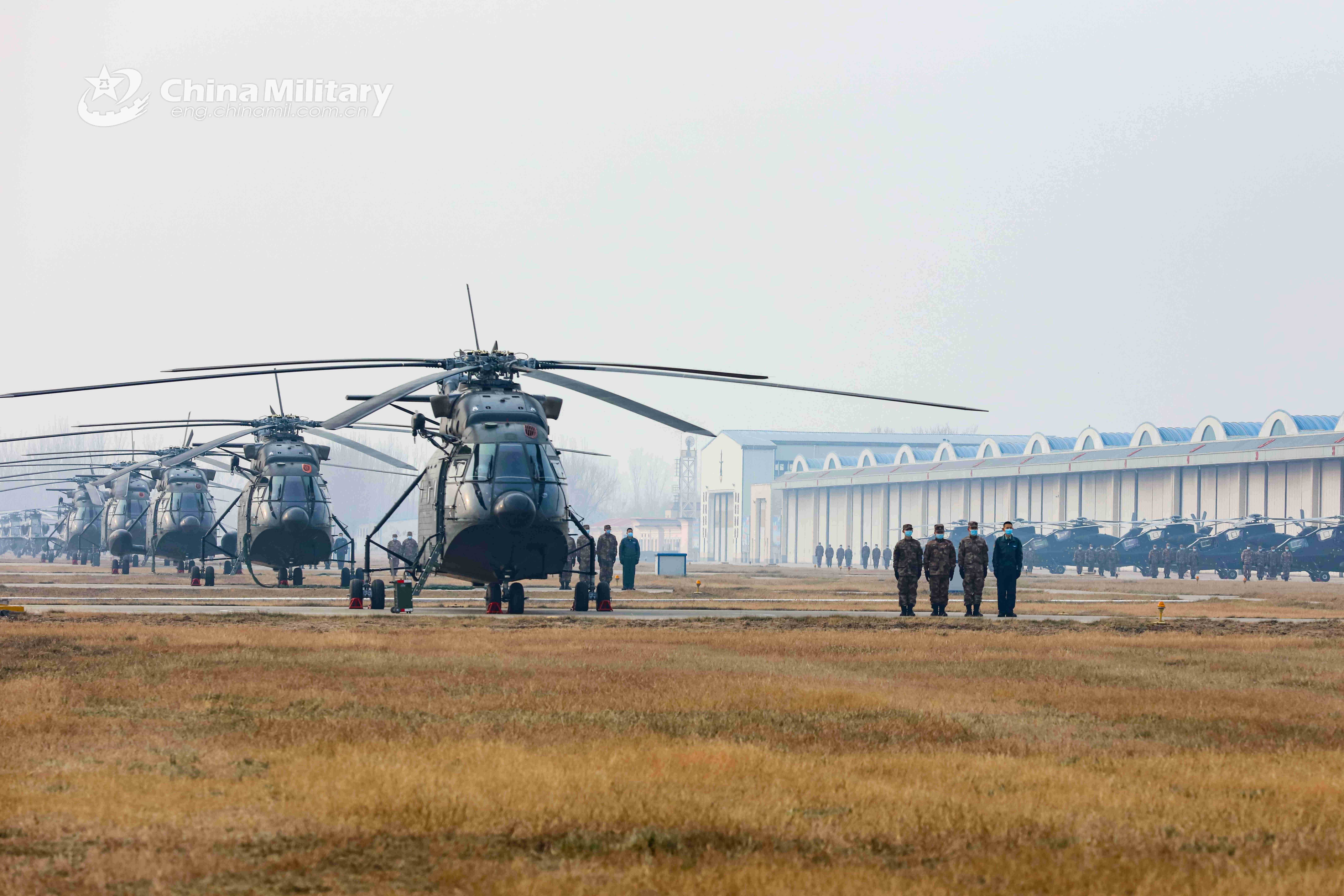 To implement the mobilization order of the Central Military Commission (CMC) for military training in 2022, soldiers and helicopters assigned to an army aviation brigade under the 80th Group Army participate in a mobilization ceremony on January 4, 2021. (eng.chinamil.com.cn/Photo by Li Yuchen and Li Peng)