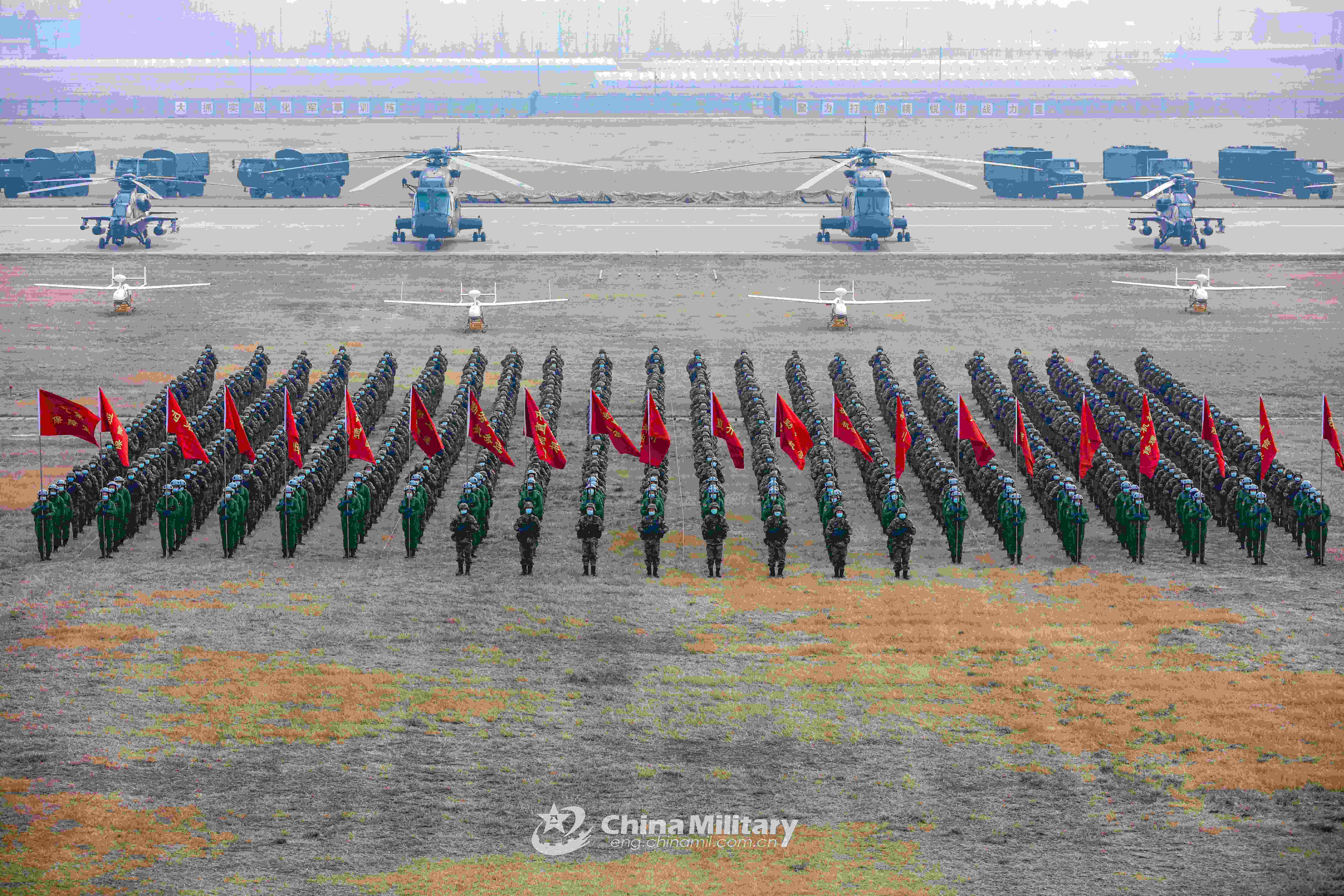 To implement the mobilization order of the Central Military Commission (CMC) for military training in 2022, soldiers and helicopters assigned to an army aviation brigade under the 80th Group Army participate in a mobilization ceremony on January 4, 2021. (eng.chinamil.com.cn/Photo by Li Yuchen and Li Peng)
