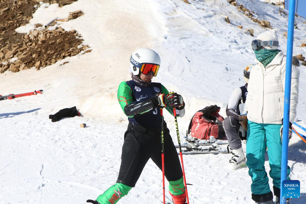 Zahra Sulghani competes during a qualification competition for the Olympics held by Iran's national skiing team at the Darbandsar Ski Resort in Tehran, Iran, Jan. 9, 2022. (Xinhua/Gao Wencheng)