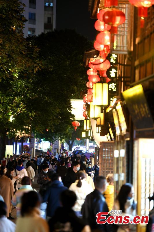 Citizens and tourists visit the ancient street in Fuzhou, capital of China’s Fujian Province, Jan. 8, 2022. (Photo: China News Service/Wang Dongming)