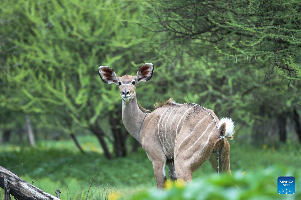 A kudu is seen at the Gaborone Game Reserve in Gaborone, capital of Botswana, Jan. 7, 2022. Gaborone Game Reserve was established in 1988 to give the public an opportunity to view Botswana's wildlife in a natural and accessible location. (Photo by Tshekiso Tebalo/Xinhua)