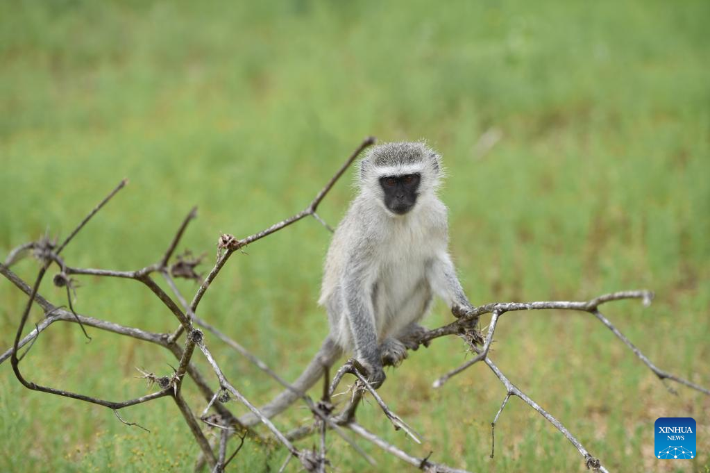A vervet monkey is seen at the Gaborone Game Reserve in Gaborone, capital of Botswana, Jan. 7, 2022. Gaborone Game Reserve was established in 1988 to give the public an opportunity to view Botswana's wildlife in a natural and accessible location. (Photo by Tshekiso Tebalo/Xinhua)