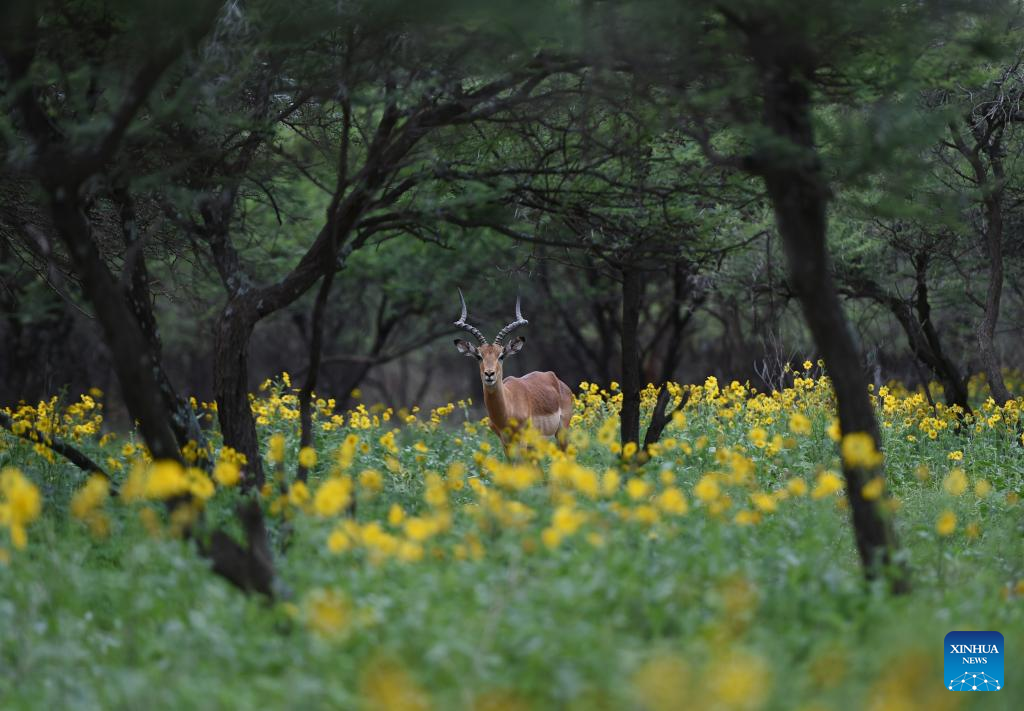 An impala is seen at the Gaborone Game Reserve in Gaborone, capital of Botswana, Jan. 7, 2022. Gaborone Game Reserve was established in 1988 to give the public an opportunity to view Botswana's wildlife in a natural and accessible location. (Photo by Tshekiso Tebalo/Xinhua)
