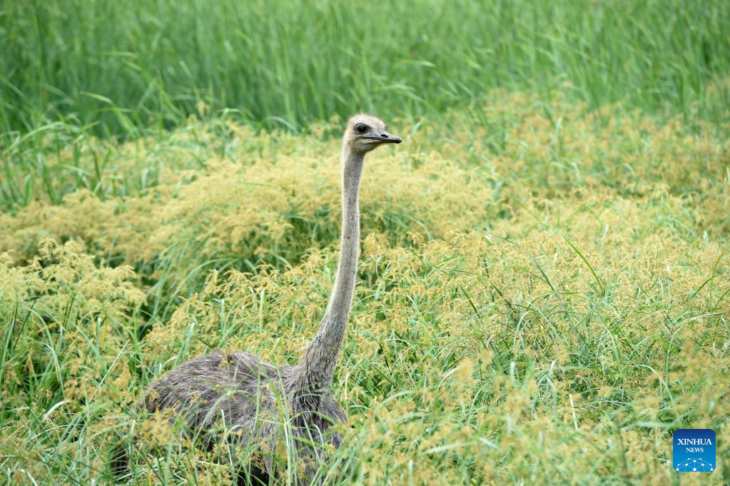 An ostrich is seen at the Gaborone Game Reserve in Gaborone, capital of Botswana, Jan. 7, 2022. Gaborone Game Reserve was established in 1988 to give the public an opportunity to view Botswana's wildlife in a natural and accessible location. (Photo by Tshekiso Tebalo/Xinhua)