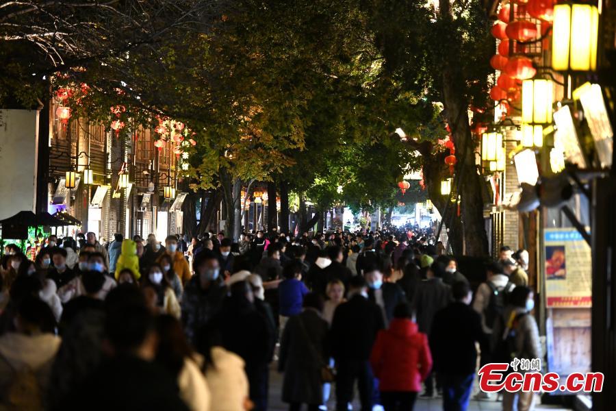 Visitors stroll along the Three Lanes and Seven Alleys in Fuzhou, January 10, 2022. (Photo: China News Service/Wang Dongming)