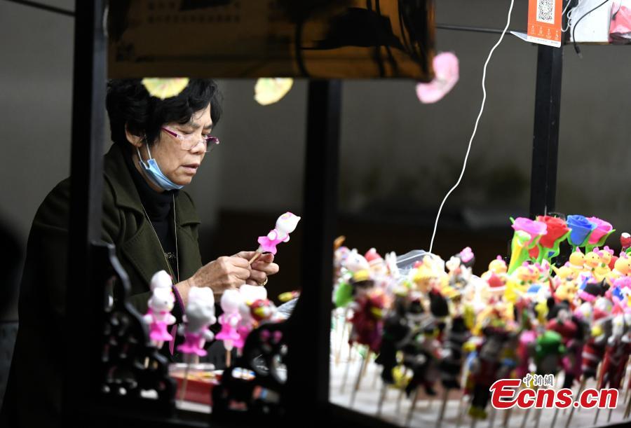 A craftsman makes flour figurines in the Three Lanes and Seven Alleys in Fuzhou, January 10, 2022. (Photo: China News Service/Wang Dongming)