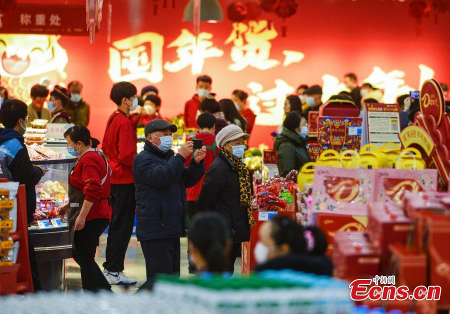 Local citizens purchase goods at the “Spring Festival Shopping area” in a mall in Urumqi, capital of northwest China’s Xinjiang Uyghur Autonomous Region on January 10, 2022. (Photo: China News Service/Liu Xin)