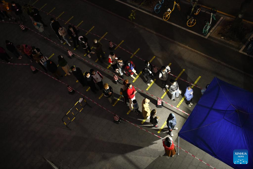 Citizens queue up for nucleic acid testing at a testing site in Shenzhen, south China's Guangdong Province, Jan. 11, 2022.(Xinhua/Liang Xu)