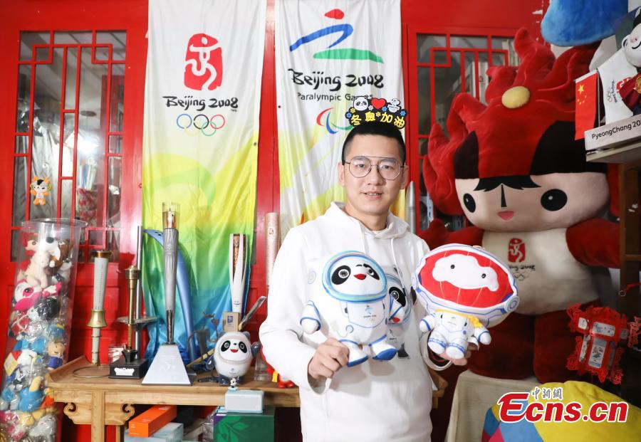 Photo taken on January 12, 2022 shows Winter Olympic mascot Bing Dwen Dwen and Winter Paralympic mascot Shuey Rhon Rhon wearing space suits collected in Zhang Wenquan's house in Beijing. (Photo: China News Service/Zhao Juan)