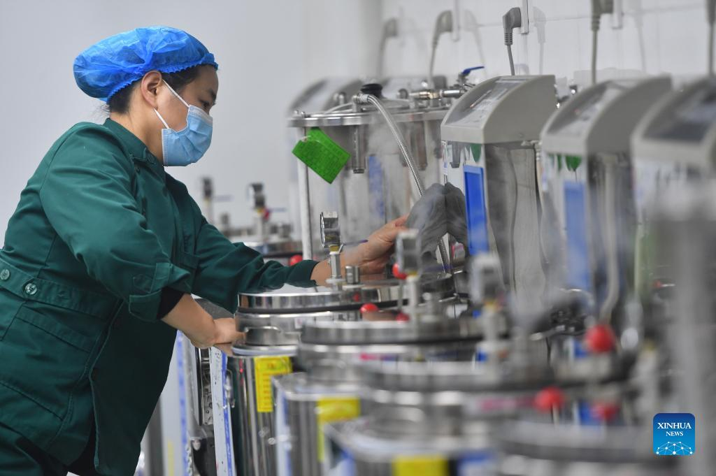 A staff member checks the operation of machines to make traditional Chinese medicine (TCM) decoctions at Yuzhou TCM hospital in Yuzhou City, central China's Henan Province, Jan. 13, 2022. Yuzhou of Henan province has introduced TCM to individuals under medical quarantine and medical workers at the frontline to help control the recent spike in COVID-19 infections. (Xinhua/Li Jianan)
