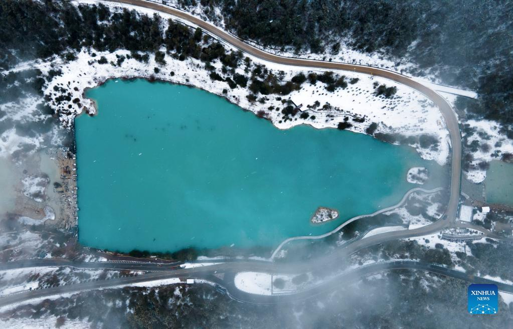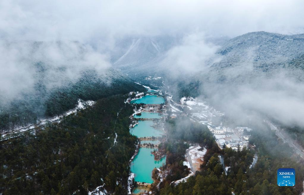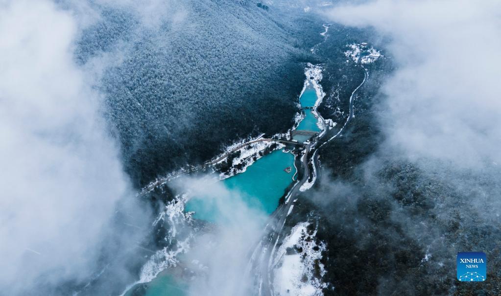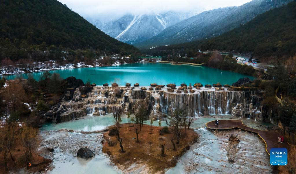 Aerial photo taken on Jan. 13, 2022 shows the winter scenery of Lanyue (Blue Moon) Valley in Lijiang, southwest China's Yunnan Province. (Xinhua/Wang Guansen)