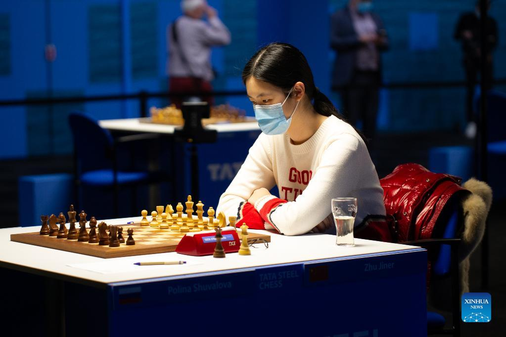 Zhu Jiner of China competes during the Tata Steel Chess Tournament 2022 in Wijk aan Zee, the Netherlands, Jan. 15, 2022. (Photo by Sylvia Lederer/Xinhua)