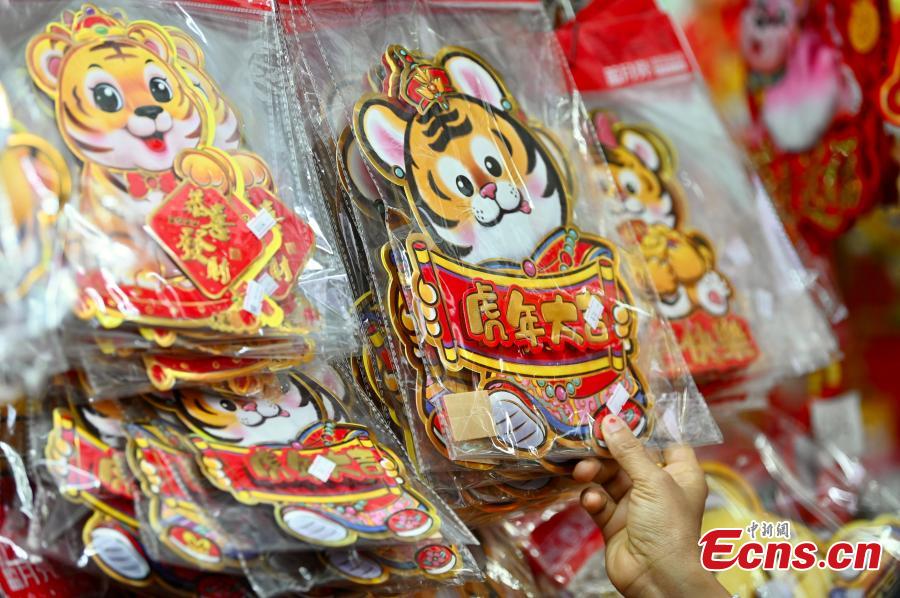 Citizens in Hong Kong Special Administrative Region (HKSAR) buy decorations such as couplets and lanterns for the upcoming Chinese New Year, the year of the tiger. (Photo: China News Service/Li Zhihua)