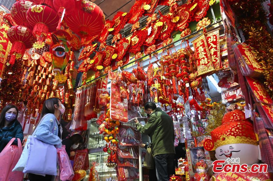 Citizens buy new year decorations in Sham Shui Po District, Hong Kong. (Photo: China News Service/Li Zhihua)