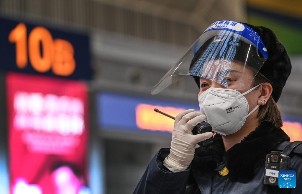 A staff member works at Xi'an North Railway Station in Xi'an, northwest China's Shaanxi Province, Jan. 16, 2022. The Spring Festival travel rush, China's largest annual travel rush, will last from Jan. 17 to Feb. 25 this year. During the 40-day travel season, also known as chunyun, many Chinese people will travel to meet their families for the Chinese Lunar New Year, or Spring Festival, which will fall on Feb. 1, 2022. (Xinhua/Tao Ming)