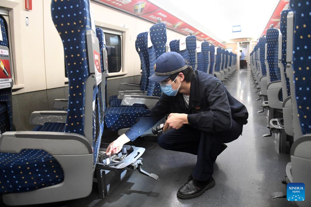 Maintenance work for bullet trains prepared in Guangxi for Spring Festival travel rush (3)