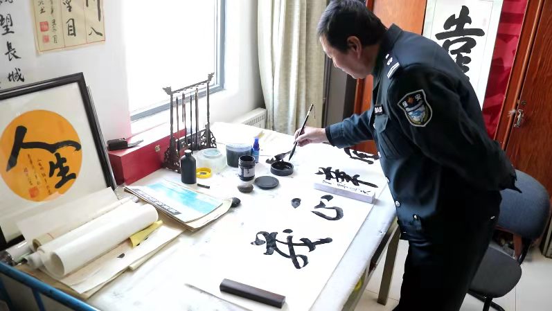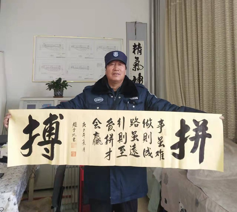 In July 2020, Zhao became a security guard at Ningxia Normal University. One day, when he walked into the teaching building for the school of fine arts, he was impressed by the calligraphy and fine art works that were hung on the wall. Zhao, who was then in charge of security and guarding services at the school of music, promptly asked his company to assign him to work for the school of fine arts so that he could move closer to something he truly loves.