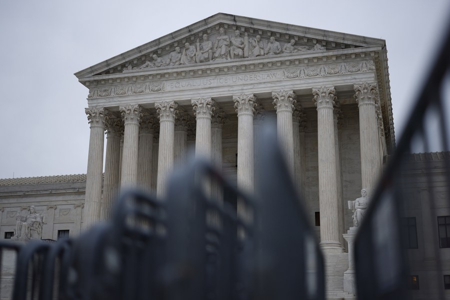 Photo taken on Jan. 13, 2022 shows the U.S. Supreme Court Building in Washington, D.C., the United States.(Photo by Ting Shen/Xinhua)