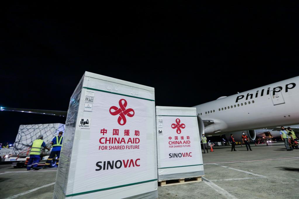 Cargos containing China's Sinovac vaccines are seen in Pasay City, the Philippines on Oct. 24, 2021. (Rouelle Umali/Xinhua)