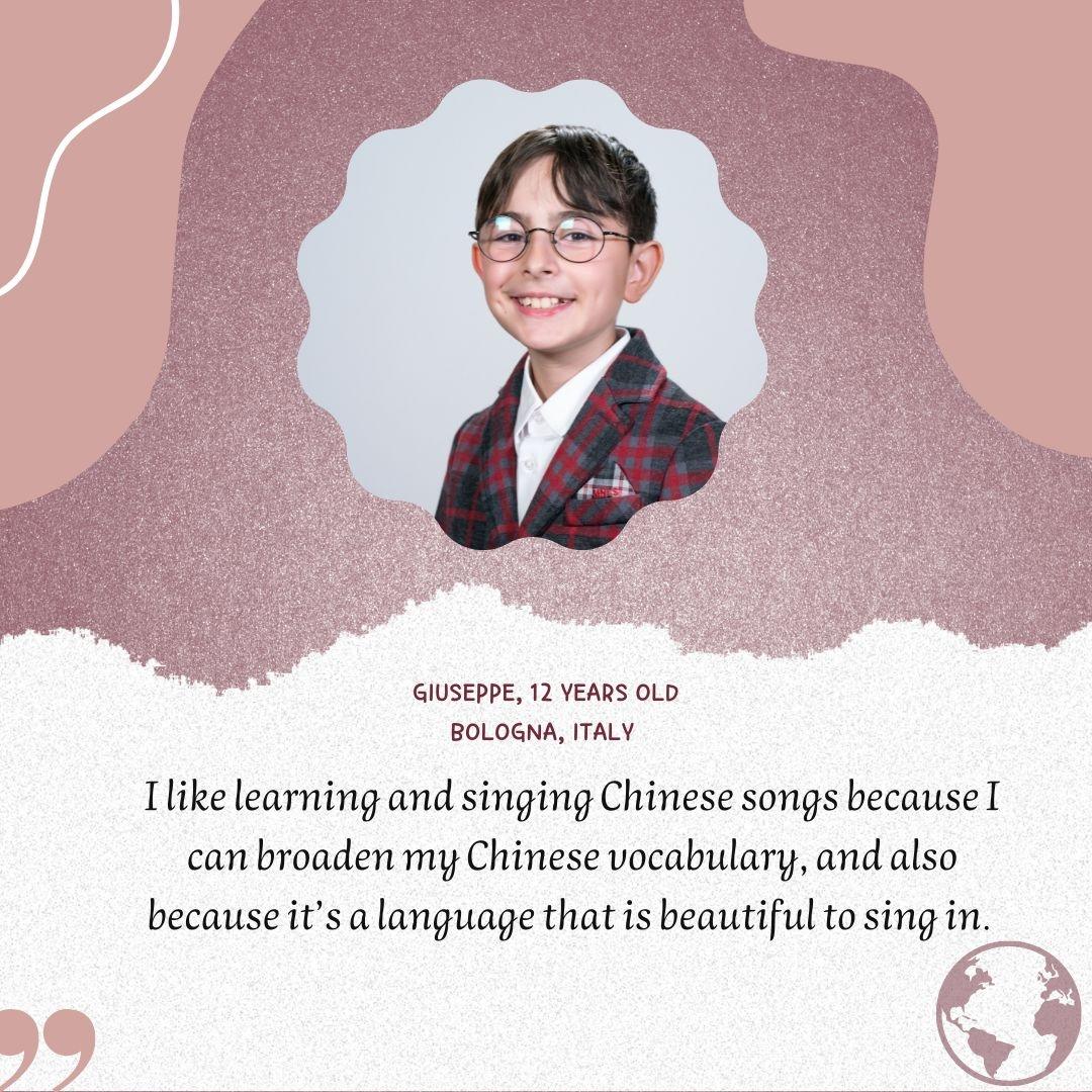 Some of them even developed an interest in Chinese culture. "Now I take Chinese courses at school. I think Chinese is not very hard to learn because I love Chinese and Chinese culture," said Giuseppe, a 12-year-old Antoniano chorister whose dream is to become a veterinarian in China.