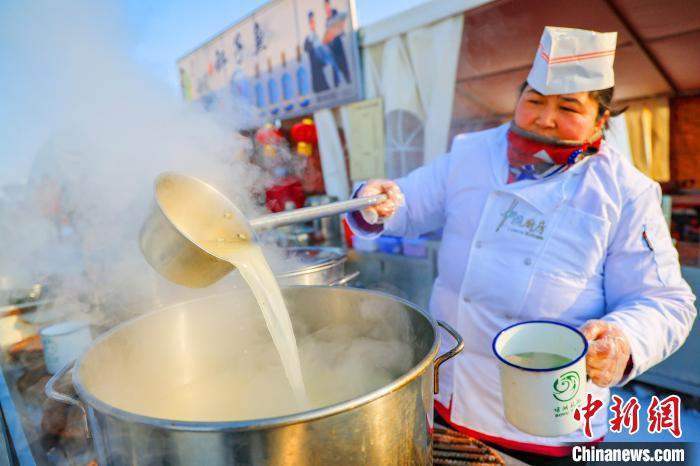 Photo shows a chef working at a food stall in Bohu county, northwest China's Xinjiang Uygur Autonomous Region where a series of events are being held prior to the Chinese New Year, including ice and snow cultural activities, including winter fishing, horse races and gourmet dining. (Photo/Hou Wenxiao)