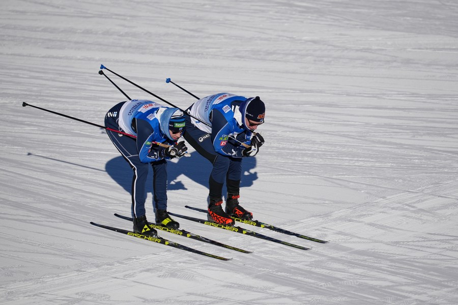 Participants conduct test on the track during the biathlon international training week at the National Biathlon Center in Zhangjiakou competition zone of the Beijing 2022 Olympic and Paralympic Winter Games, in Zhangjiakou, north China's Hebei Province, Dec. 28, 2021. (Xinhua/Mu Yu)