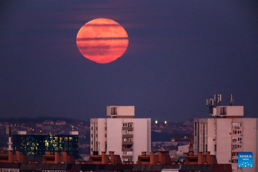 Photo taken on Jan. 18, 2022 shows a full Moon above Zagreb, Croatia. (Igor Soban/PIXSELL via Xinhua)