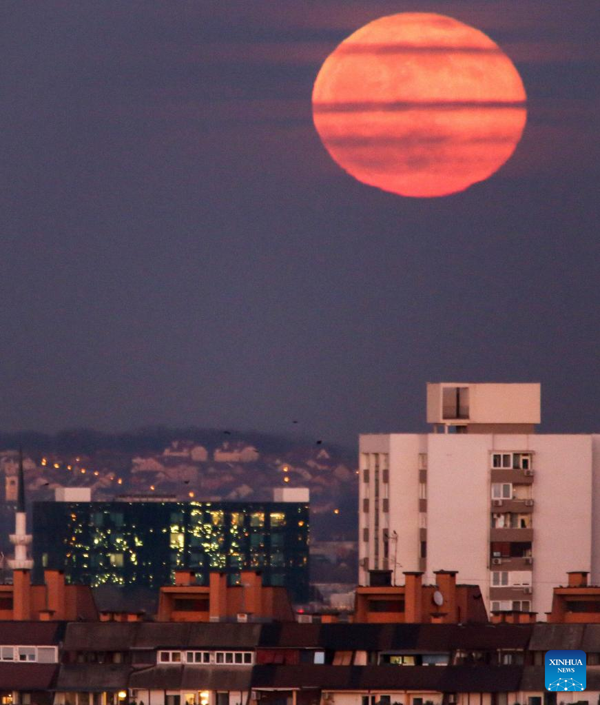 Photo taken on Jan. 18, 2022 shows a full Moon above Zagreb, Croatia. (Igor Soban/PIXSELL via Xinhua)