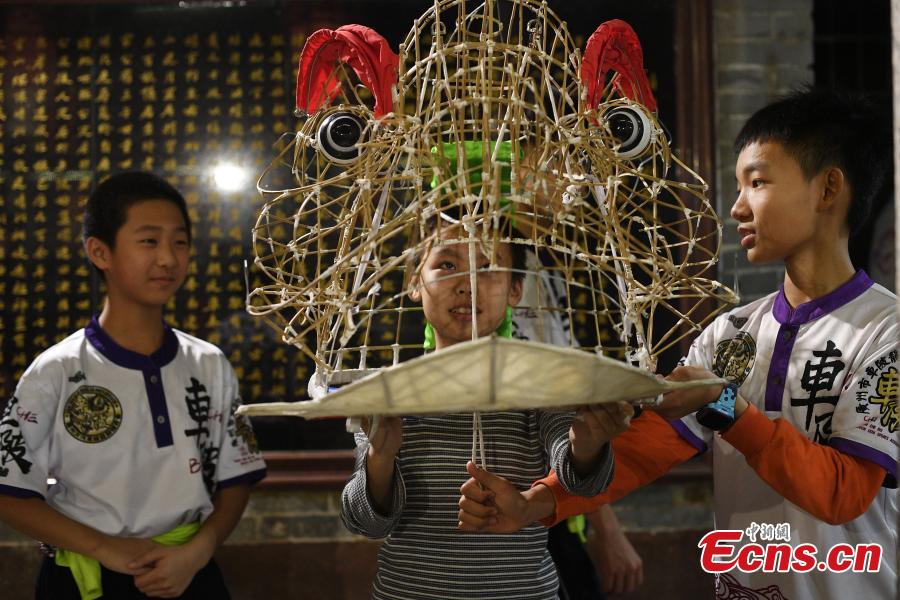 Lion dancers practice at Sugong Temple in Qingchuan, Guangzhou, South China's Guangdong Province, Jan. 18, 2022. (Photo: China News Service/Chen Chuhong)