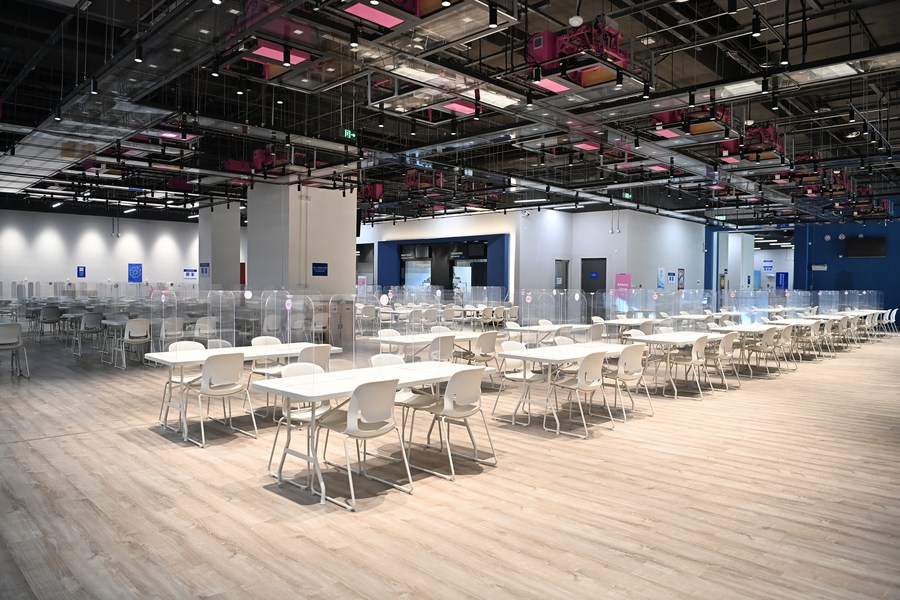 A photo taken on Jan. 10, 2022 shows the Media Dining Hall of the Main Media Center for the 2022 Olympic and Paralympic Winter Games in Beijing, capital of China. (Xinhua/He Changshan)