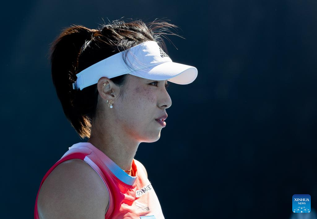 Wang Qiang of China reacts during the Women's Singles second round match against Alison Van Uytvanck of Belgium at Australian Open 2022 in Melbourne, Australia, Jan. 19, 2022. (Photo by Hu Jingchen/Xinhua)
