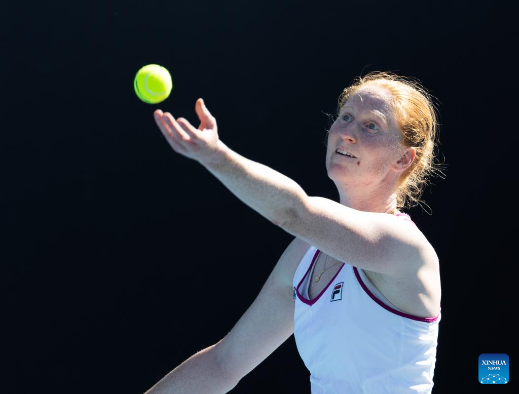 Alison Van Uytvanck of Belgium serves during the Women's Singles second round match against Wang Qiang of China at Australian Open 2022 in Melbourne, Australia, Jan. 19, 2022. (Photo by Hu Jingchen/Xinhua)