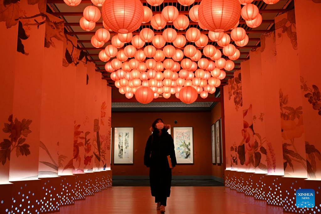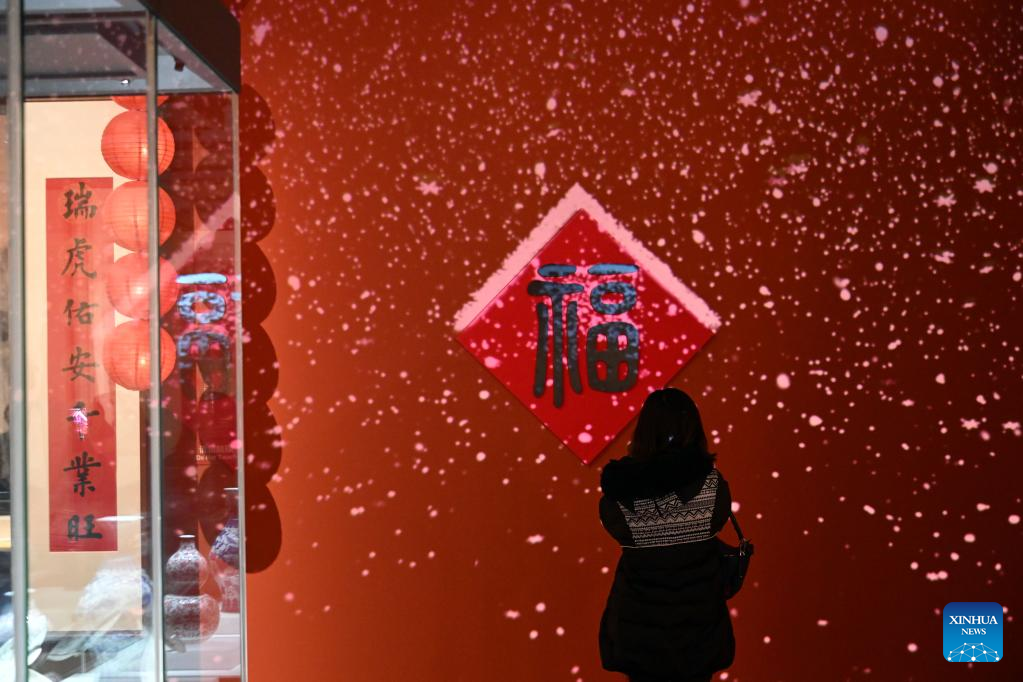 A woman visits a tiger-themed exhibition at the National Museum of China in Beijing, capital of China, Jan. 19, 2022. As the Year of Tiger approaches, The Tiger as Talisman: 2022 Chinese New Year Exhibition, with a selection of artworks showcasing tiger in Chinese culture, opened to the public here on Wednesday. (Xinhua/Jin Liangkuai)