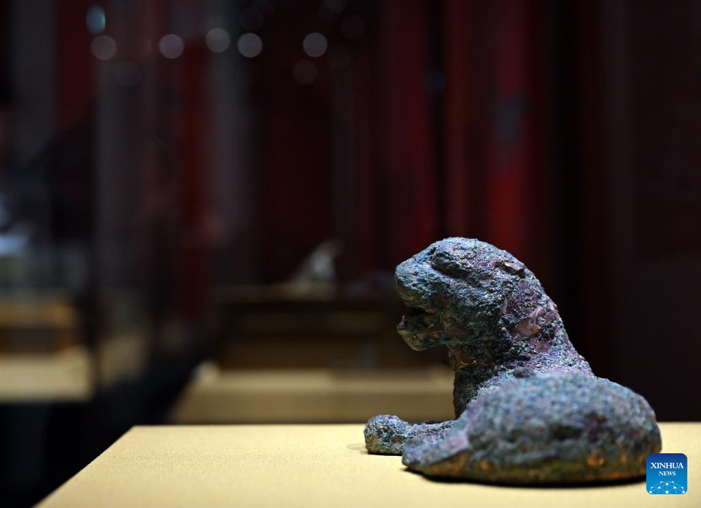 Photo taken on Jan. 19, 2022 shows an exhibit displayed during the tiger-themed exhibition at the National Museum of China in Beijing, capital of China. As the Year of Tiger approaches, The Tiger as Talisman: 2022 Chinese New Year Exhibition, with a selection of artworks showcasing tiger in Chinese culture, opened to the public here on Wednesday. (Xinhua/Jin Liangkuai)