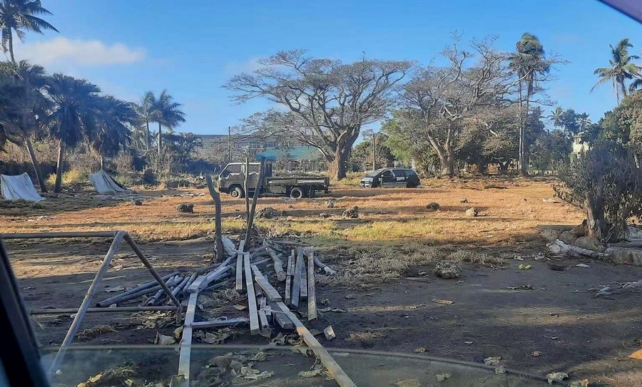 Photo taken on Jan. 20, 2022 shows the scene of Nuku'alofa after tsunami in Tonga. (Xinhua)